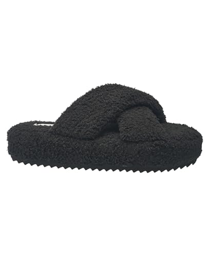 AEROPOSTALE Fuzzy Open Toe Slippers Shoes for Women – gentle Faux Sherpa Fur House Slippers with Memory Foam X Band, Indoor & Outdoor Non-Slip Sole, Fluffy Criss-Cross Design for Bedroom, Spa, and Lounge