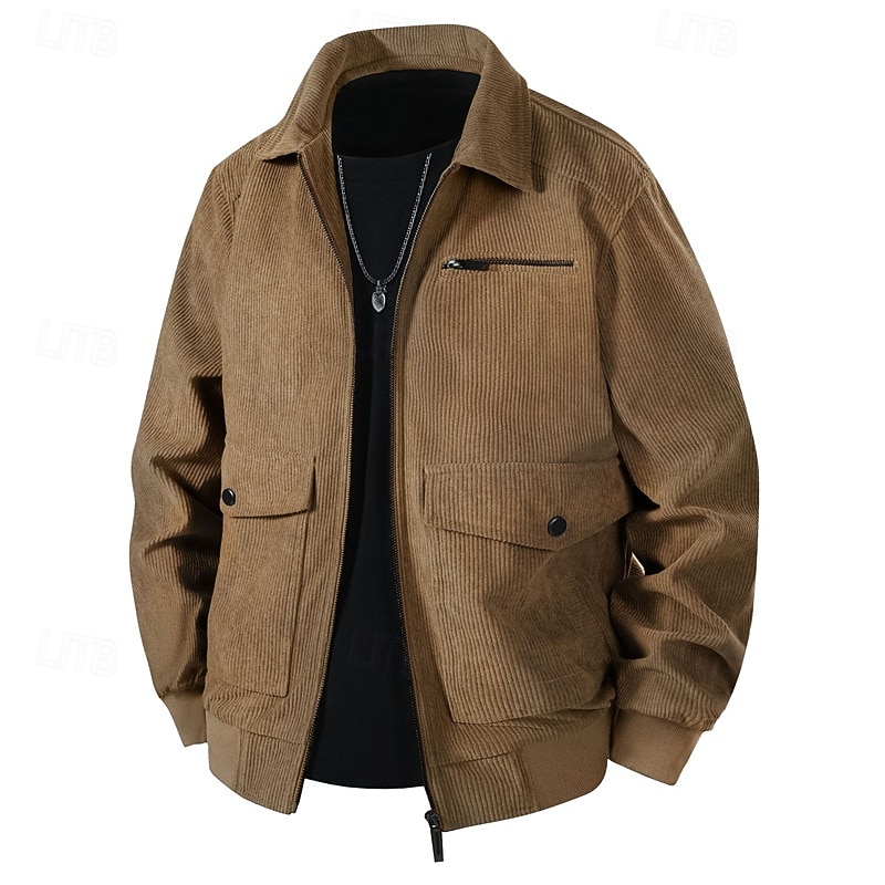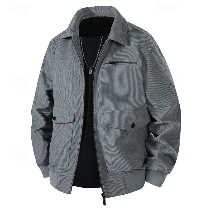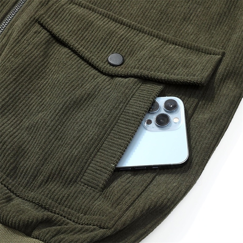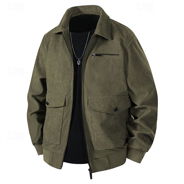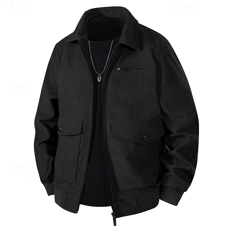 This Men's Lightweight Jacket Corduroy Jacket Cargo Jacket Casual Jacket Vacation Daily Breathable Pocket Spring Fall Plain Fashion iconic Lapel Regular Black Khaki Army Green Gray Jacket combines elegant design with practical functionality. Every detail has been carefully considered to ensure you get the best possible experience. The excellent construction means this product will serve you well for years to come.
