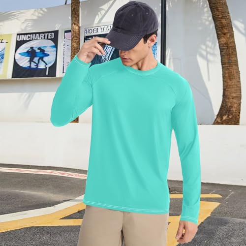 Turquoise Blue Men's UPF 50+ pleasant Loose Men's Sun Protection Long Sleeve Water Fishing